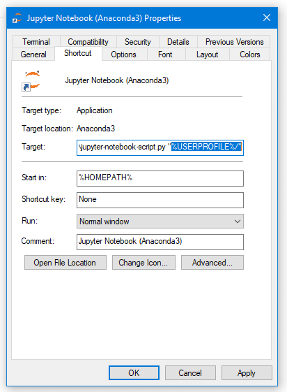 Jupyter Notebook -> Properties.